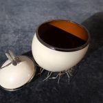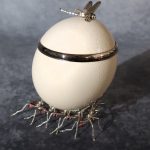 | Ausführungen | Ameisen und Libelle aus Kunstharz und versilbert, Deckel mit vernickeltem Rand kann geöffnet werden, Handarbeit |