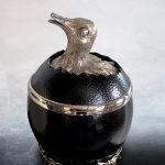 | Ausführungen | Deckel mit vernickeltem Rand kann geöffnet werden, Handarbeit, Strauß aus Kunstharz und versilbert |