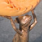 handcraft | melo-sea shell with nickel plated rim | gecko is made from resin and silver plated