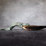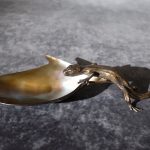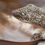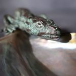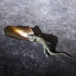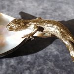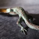 | Ausführungen | Eidechse aus Kunstharz versilbert oder mit Gold-, Bronze oder Grünspan-Patina, Handarbeit |
