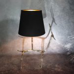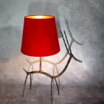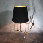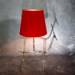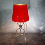| Farben | in schwarz brüniert oder gold mit Lampenschirm in schwarz oder rot |