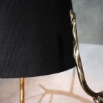 | Ausführungen | Handarbeit, Lampenfuß schwarz brüniert oder gold, Lampenschirm mit Dupionseide bezogen |