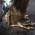 | Materialien | entweder mit zerstossenen Lipp-, Paua- oder Austern-Muschelschalen, Messing gegossen |
