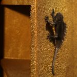 | Ausführungen | dunkle Variante mit Griff in Krokodil-Form dunkel patiniert und Türanschlag links, goldene Varianten mit dunkel patinierten Griffen in Leguan-Form und Türanschlag rechts oder links, Handarbeit |